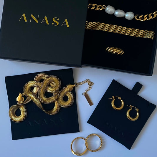 This curated collection features high-quality jewelry at an accessible price. Crafted from 18K gold-plated stainless steel and 18K gold vermeil, each piece is hypoallergenic, water-resistant, and tarnish-resistant—built to complement your everyday style.