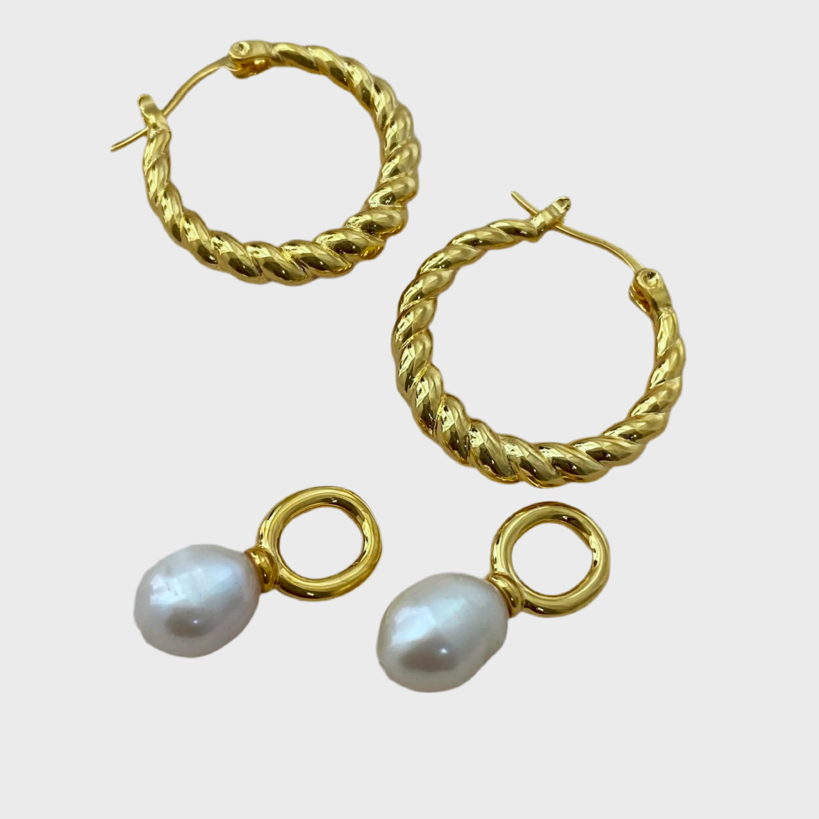Whether you prefer the hoops alone for a bold, contemporary statement, or with the pearl drop for a touch of timeless grace, these earrings offer two distinct looks in one, giving you versatility to suit any occasion.