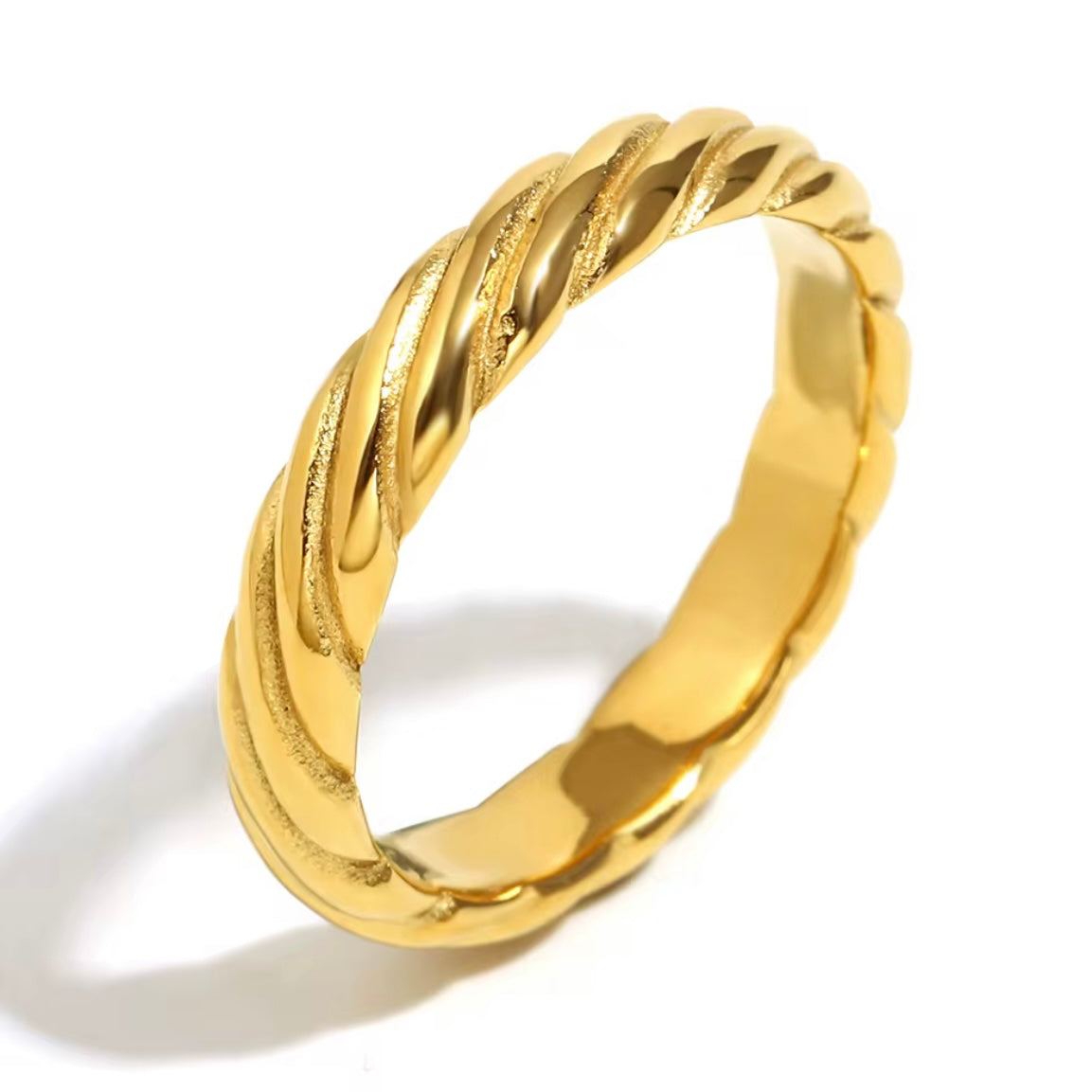 Chic and modern, The Tessa Ring features a twisted design that adds texture and visual interest. Crafted from 18K gold-plated stainless steel, it’s perfect as a standalone statement piece or to mix with other rings for a curated, contemporary look.