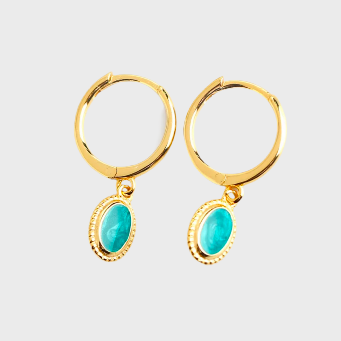 Dainty huggies with a turquoise drop charm.