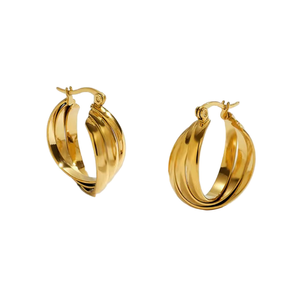 Artful and striking, The Lucia Earrings feature unique hoops with an intricate layered design that catches the light from every angle. Perfect for adding texture and visual interest, they make a statement whether worn alone or paired with simpler earrings for a curated, modern look.