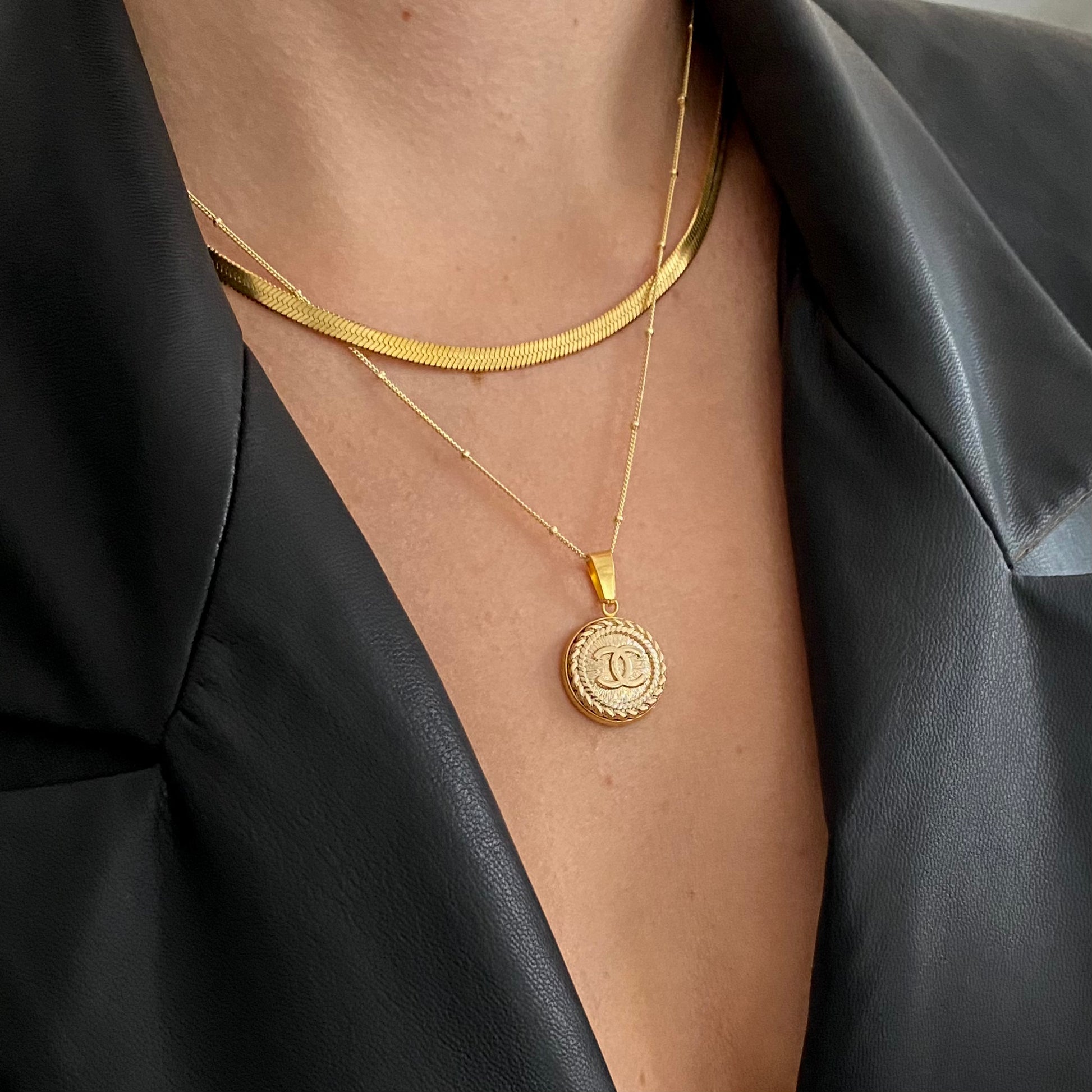 Elegant, timeless, and full of character, the Marina Necklace features a vintage button thoughtfully repurposed into a charming pendant, paired with an 18K gold vermeil satellite chain. Each piece is carefully handcrafted, giving new life to pre-loved components while maintaining its unique, individual story.